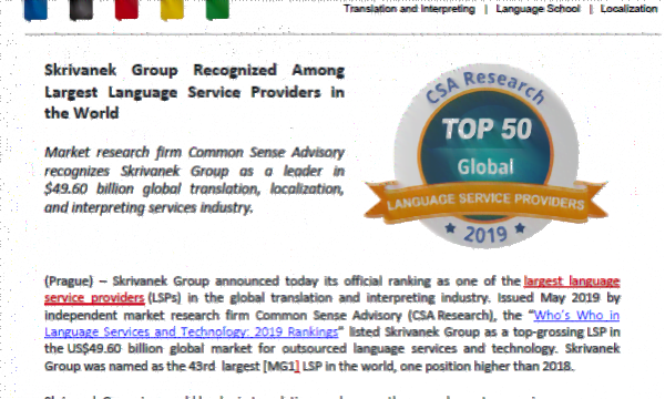 其他认证CSA 2022:全球 50 强语言服务提供商 了解更多CSA 2021:全球百强语言服务提供商 了解更多CSA 2020:全球 50 强语言服务提供商 了解更多CSA 2019:全球百强语言服务提供商 了解更多CSA 2018:全球百强语言服务提供商 了解更多